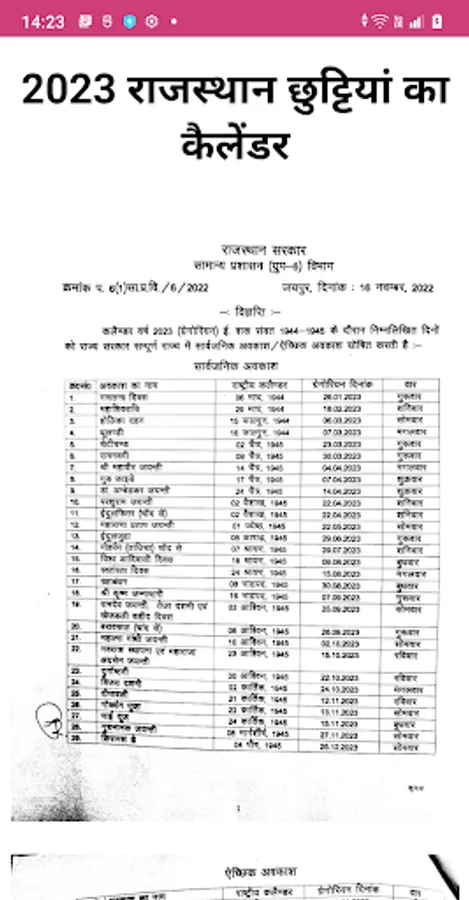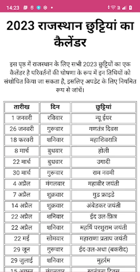 This is highly useful for Rajasthan Calendar 2023 Detailed list of holidays in 2023, public holidays in Rajasthan Sarkar Calendar.