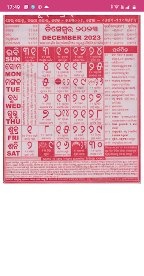 ଓଡ଼ିଆ କ୍ୟାଲେଣ୍ଡର 2023