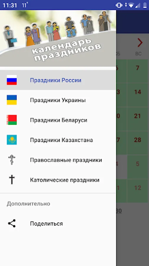 Holiday calendar will help you learn about thousands of different holidays in your country! Every day something interesting happens!