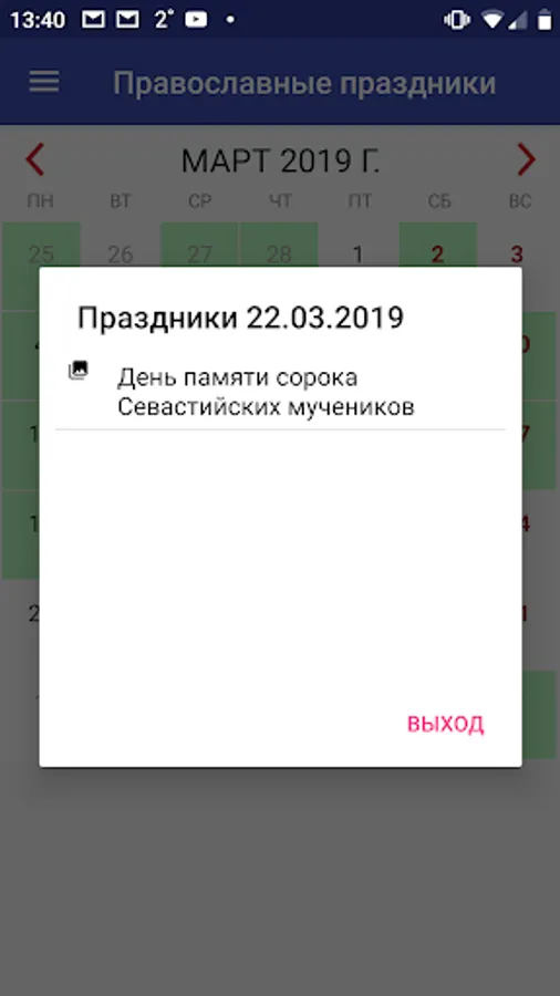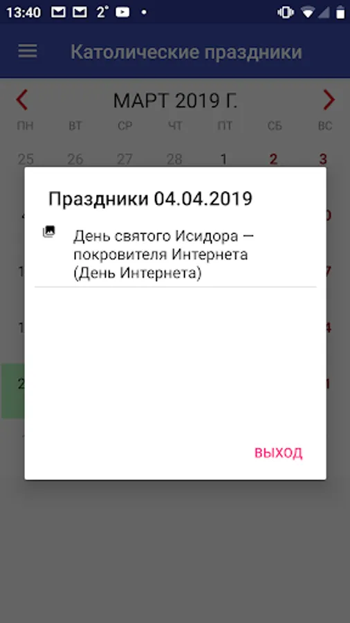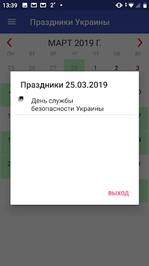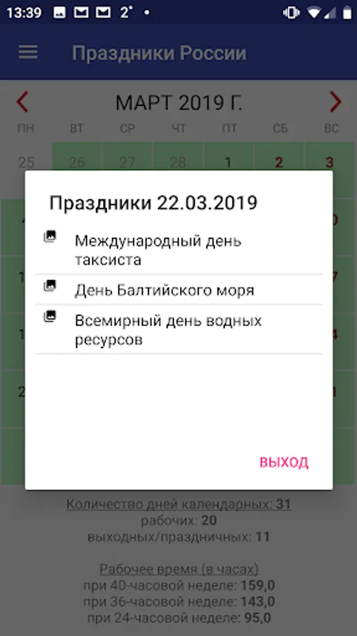 The application has a calendar that will allow you to select the date of interest and see all the holidays on this day.