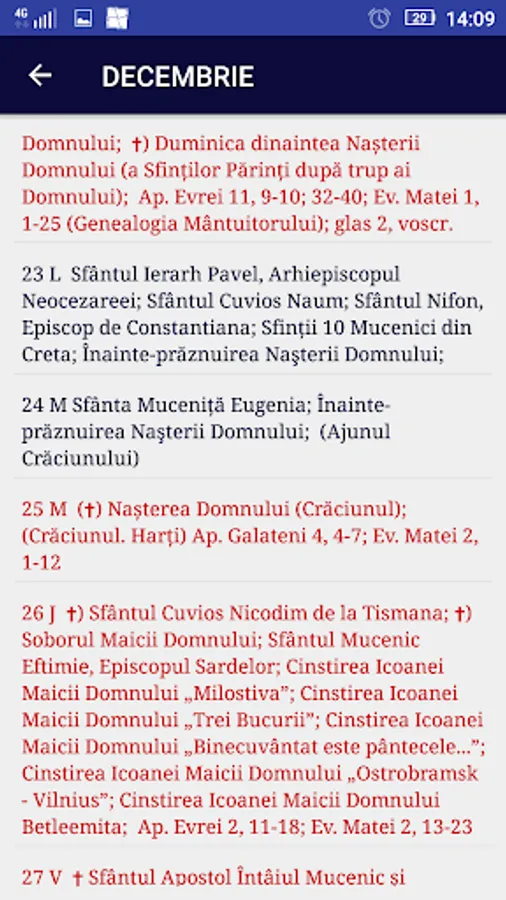 Calendar Ortodox 2023 este o aplicatie care contine calendarul crestin ortodox atat pentru anul 2023, cat si pentru anii 2019, 2020, 2021, 2022. Prezinta o evidenta a zilelor lucratoare si a sarbatorilor din an, fiecare duminica avand inclusa si evanghelia zilei respective. Doamne Ajuta!