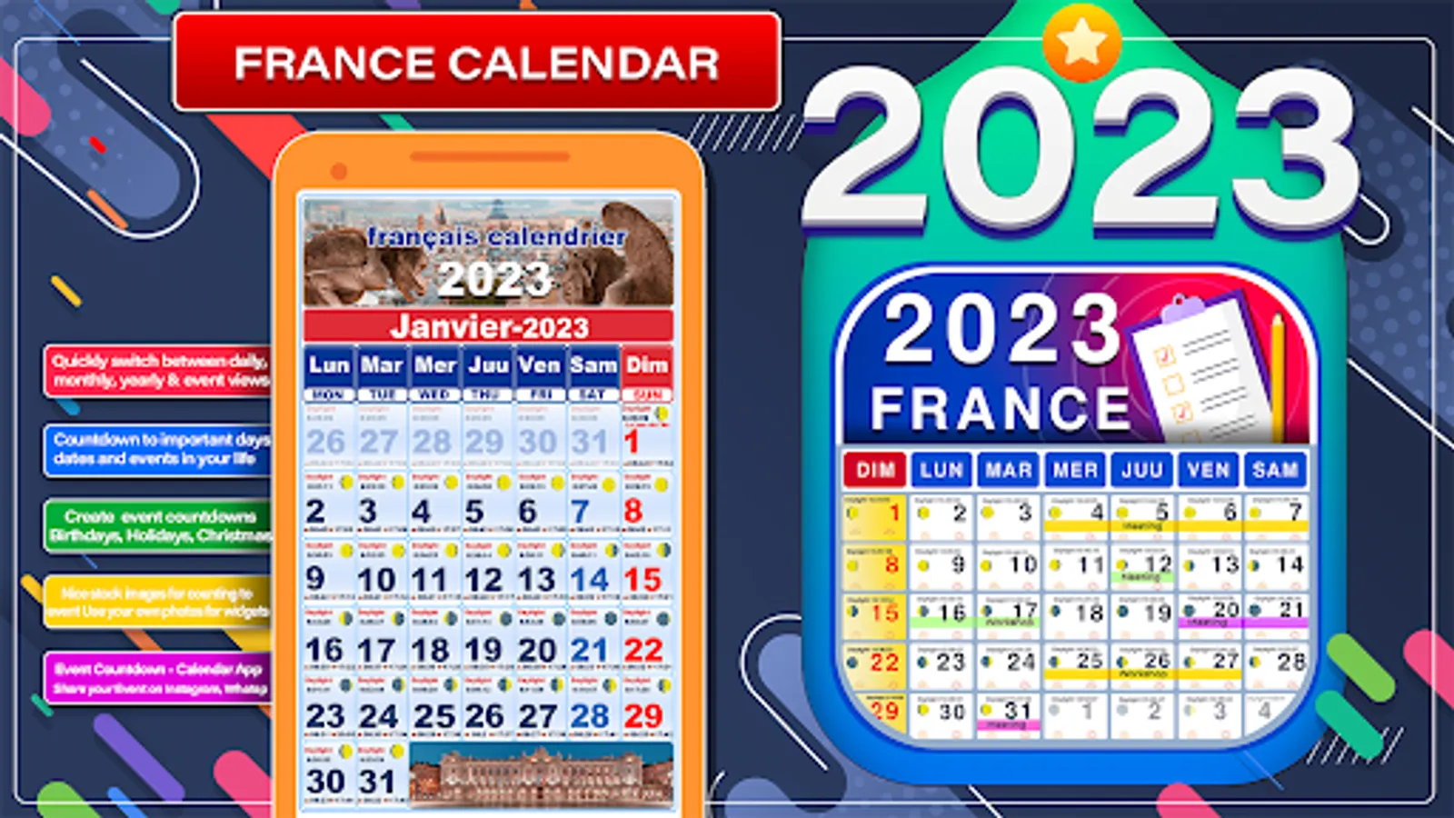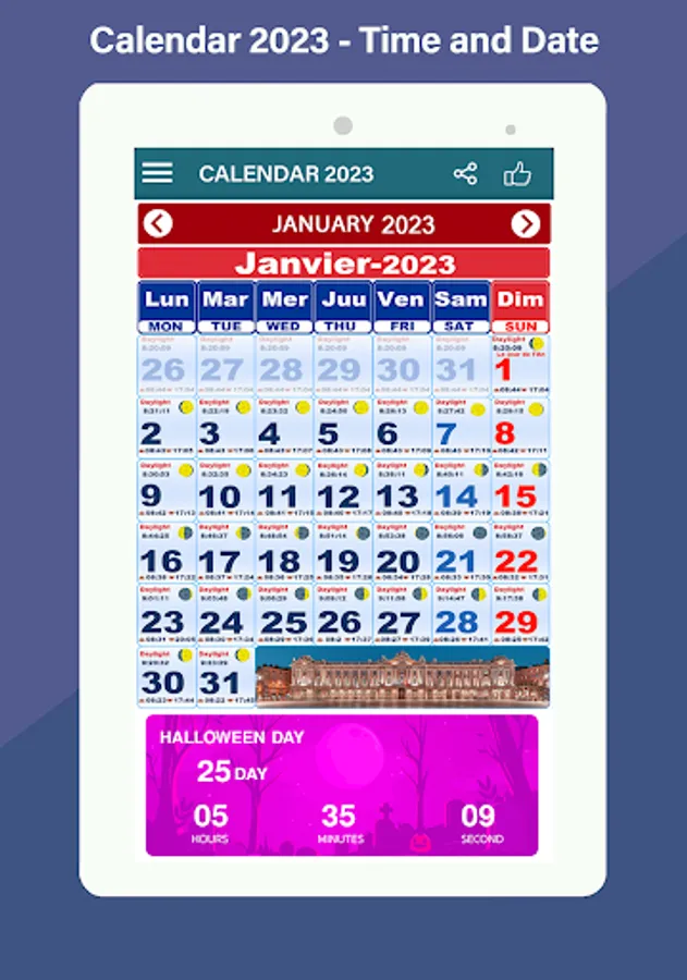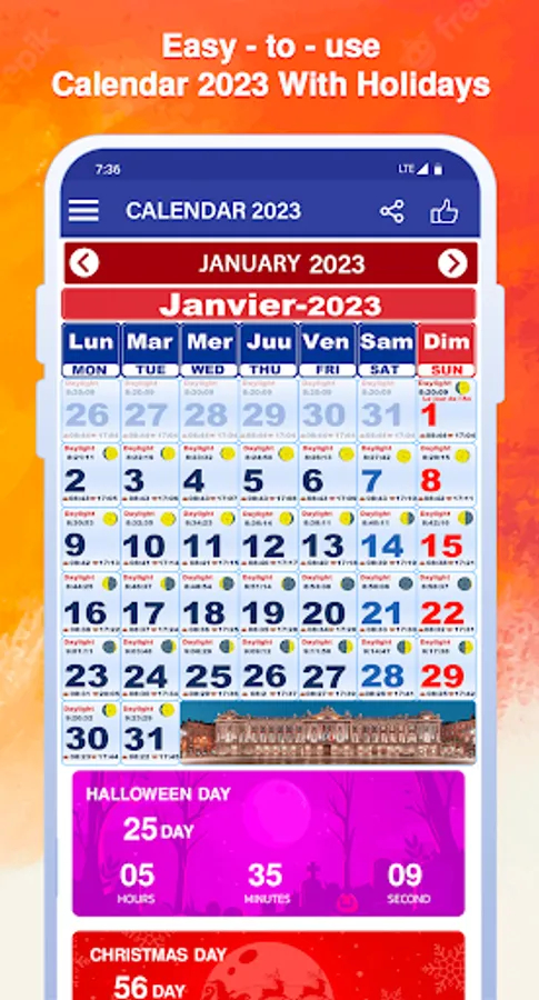 Français Calendrier 2023 The app is free : all the features are directly available.