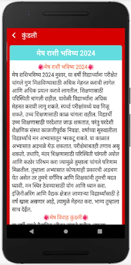 मराठी कॅलेंडर 2024 मराठी बोलणार्या लोकांसाठी सर्वोत्तम भारतीय कॅलेंडर आहे. गव्हर्नमेंट हॉलिडे, त्यौहार, सुट्ट्यांची यादी देतो. शुभ दिवस (विवाह, नामांकन, वाहन खरेदी, गृह प्रवेश) देण्यासाठी देखील मदत करतो. मारती पंचांग अर्ज म्हणून अत्यंत शिफारसीय. रशी नक्षत्र तपशीलवार सर्व कुंडलीचे तपशील