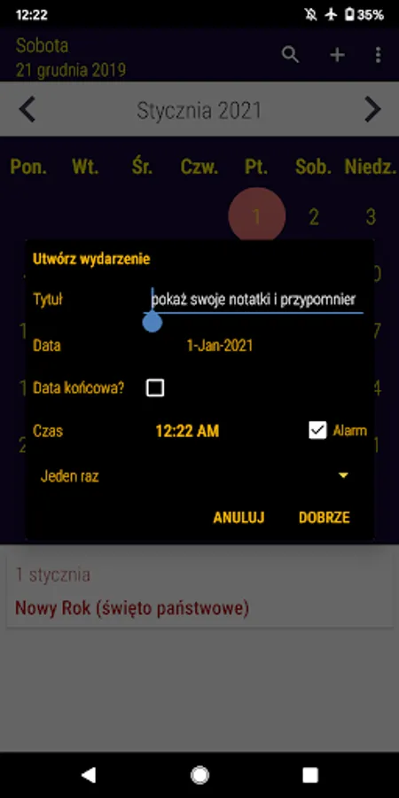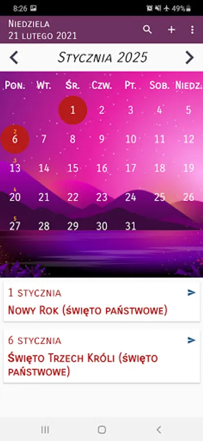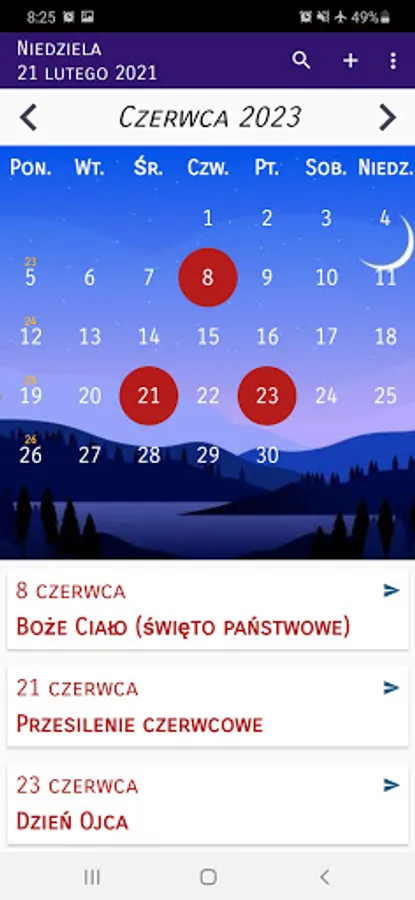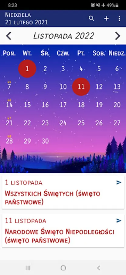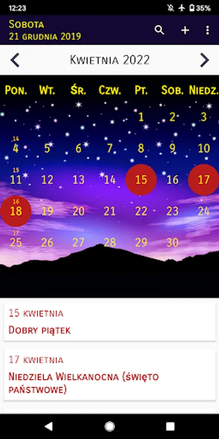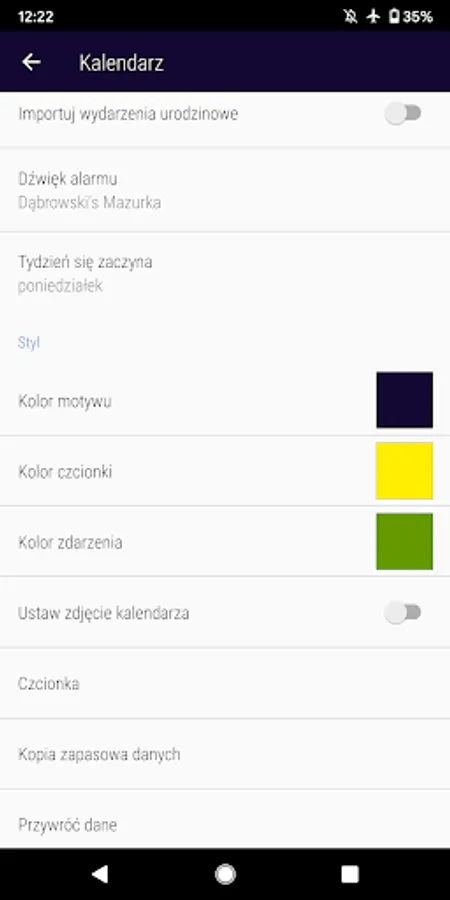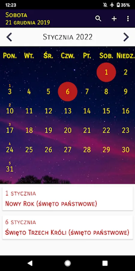 Calendar PL 2022 2023 Polish with holidays with holidays, colorful, with widget, week number and alarm. After turning on the calendar alarm, the Polish national team will play the anthem "Mazurek Dąbrowskiego".