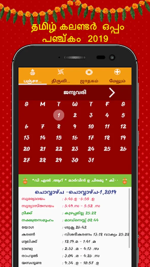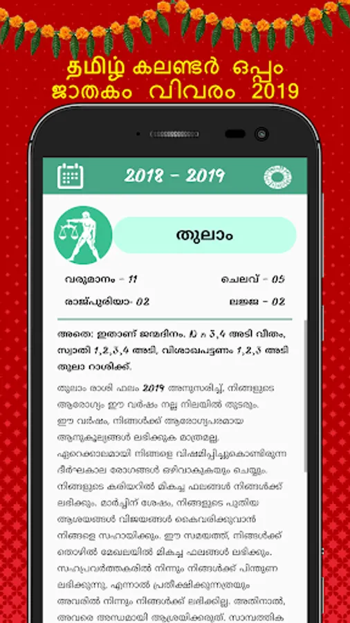 Malayalam Calendar - 2022 Panchakam app also provides horoscope of the year in Malayalam in detail.