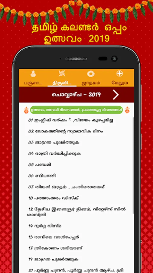 Using Malayalam Calendar - 2022 Panchakam app you can easily view results of panchangam, muhurtham and festivals of a particular date and can view complete details.