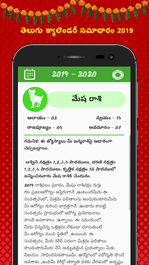 Telugu Calendar 2022 with Panchangam app also provides horoscope of the year in Telugu with all details.