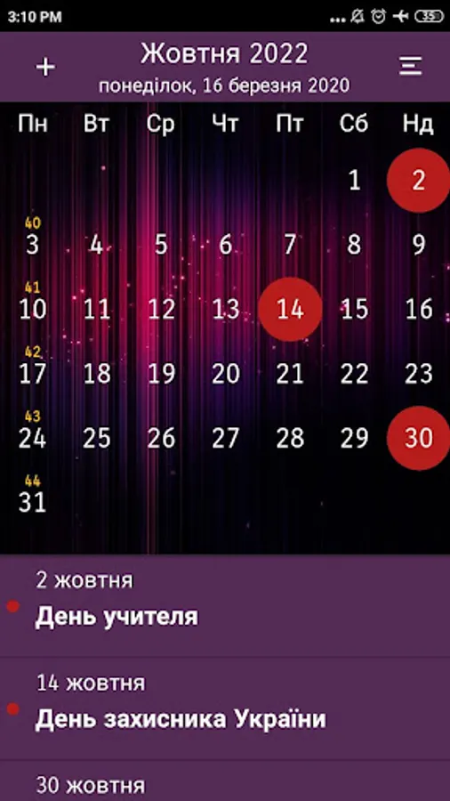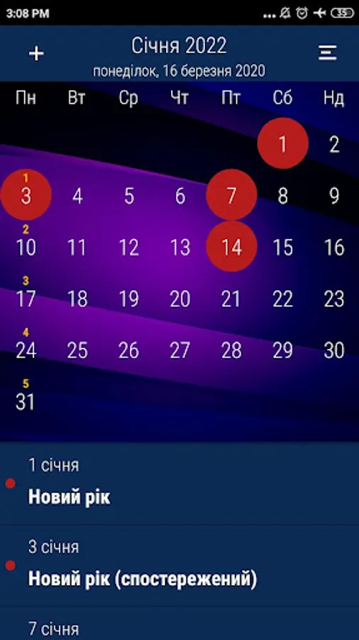 Increase productivity in Ukraine calendar 2023 2024, a compact organizer calendar with many features! This event calendar app has built-in lists of Ukrainian holidays as well as the week, so you can plan your schedule accordingly. In addition to the Holidays of Ukraine, we also hold Care Days. Use this app as your daily planner for convenient planning. Add events to your calendar and easily set reminders. Apart from these useful features, you can also personalize this event calendar app in various ways.