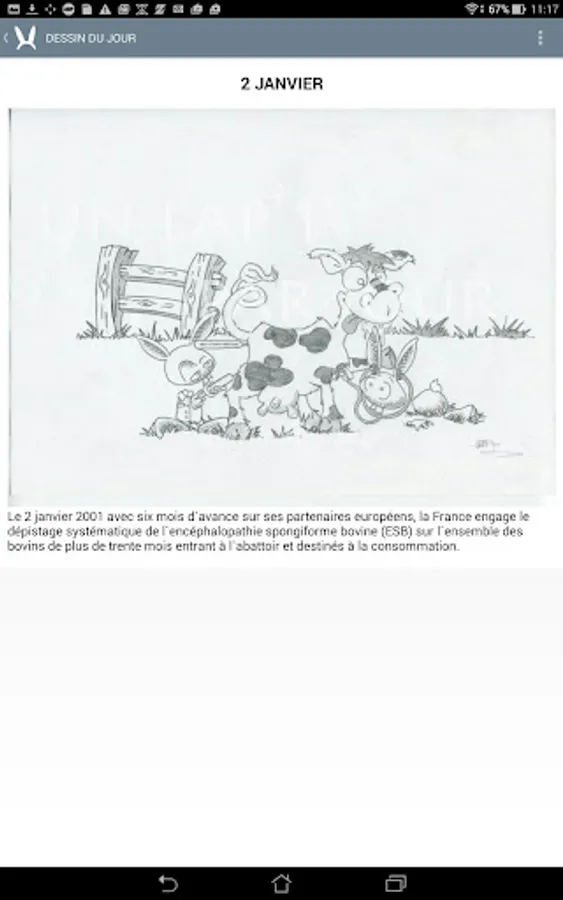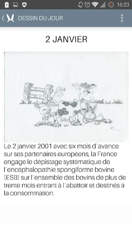 More than 900 rabbits accompany you throughout the year and retrace a daily event in history. Each drawing is accompanied by a commentary. Then every day of the year see the day drawing, rabbits teach you an event of the same date but years before.