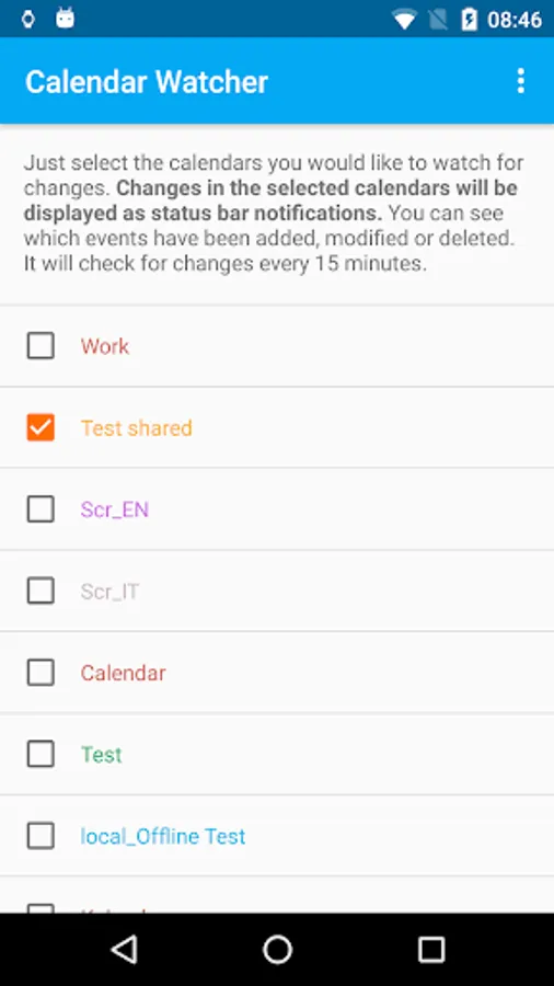 Do you have a calendar that you have shared with other persons and would like to know when they add, modify or delete events in that calendar? This app will show you a notification for each of these changes and will also show you what has changed (title, location or time).