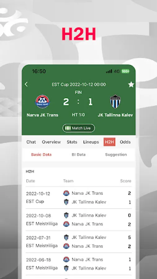 Historical confrontation: Provide users with data comparison of scores and index results through the scores and indexes of the past battles between the two sides;