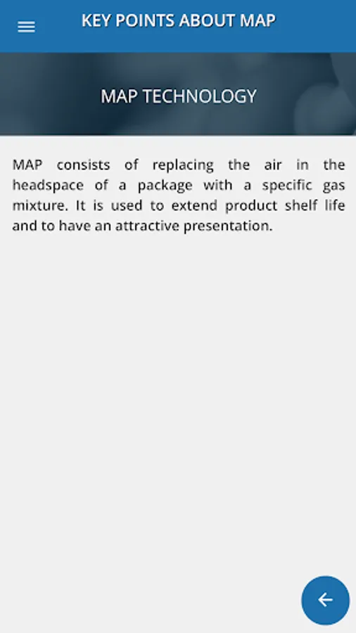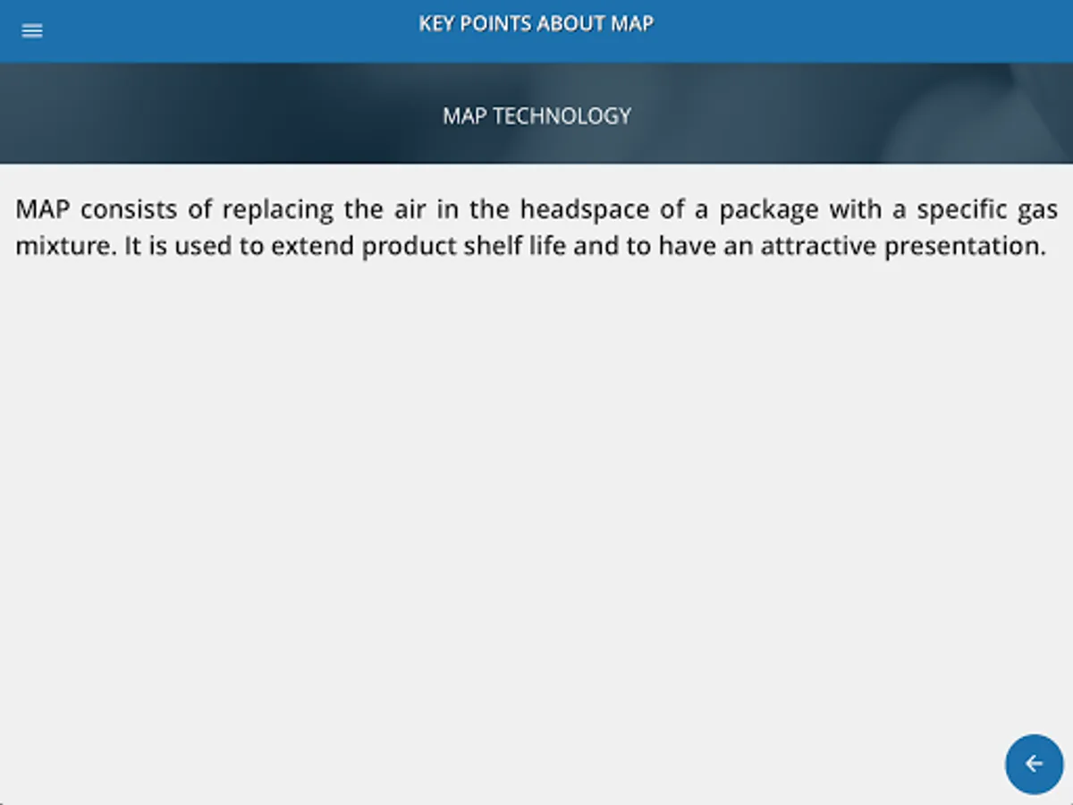 The MAP (Modified Atmosphere Packaging) technology is a food preservation technique that consists of replacing the air surrounding a food product in a package by a specific gas mixture for