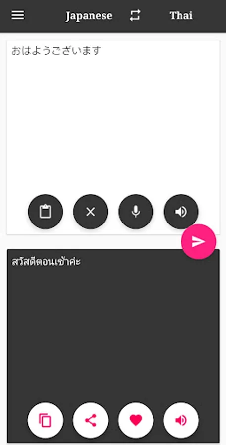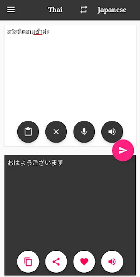 * App works in both mode, Japanese to Thai Translator or Thai to Japanese Translator.