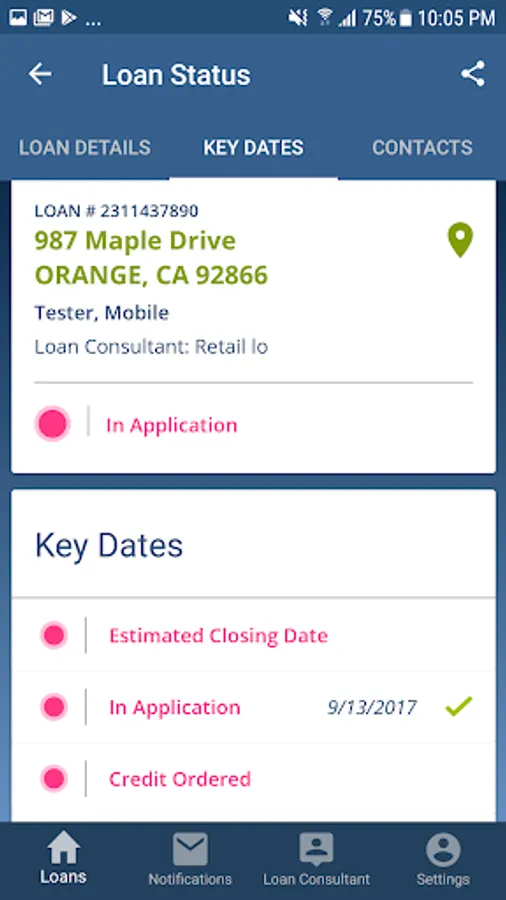 - View loan status, key dates, contacts and comments