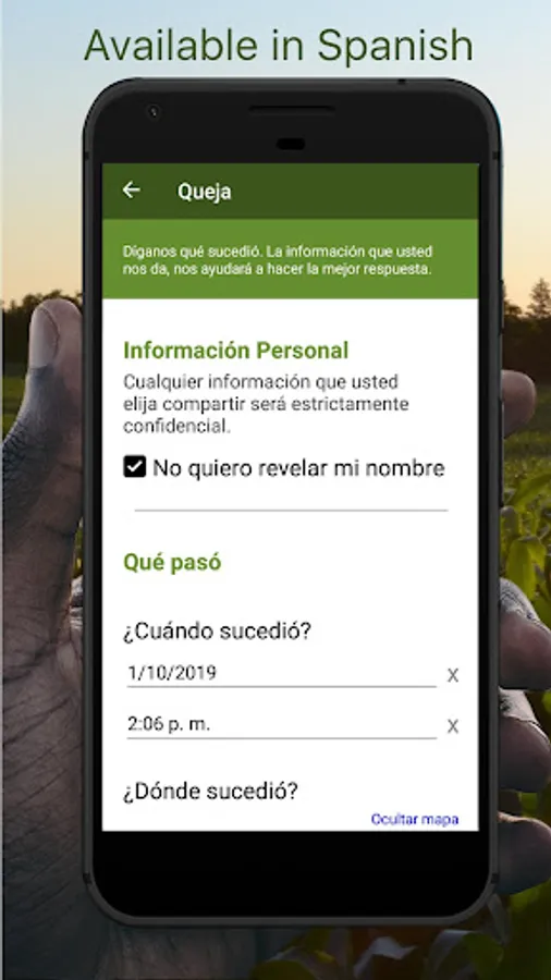 If you are an agricultural fieldworker, or work with pesticides in California and want to report a pesticide-related incident, you can use this app to do so.
