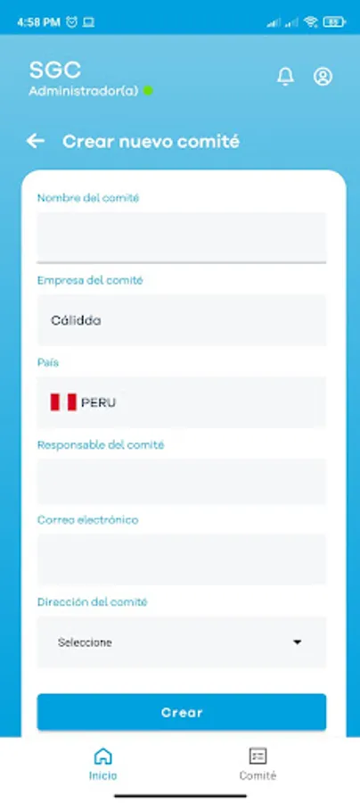 Sistema de Gestión de Comité, que permite gestionar las reuniones de los diferentes comités existentes dentro de Cálidda.