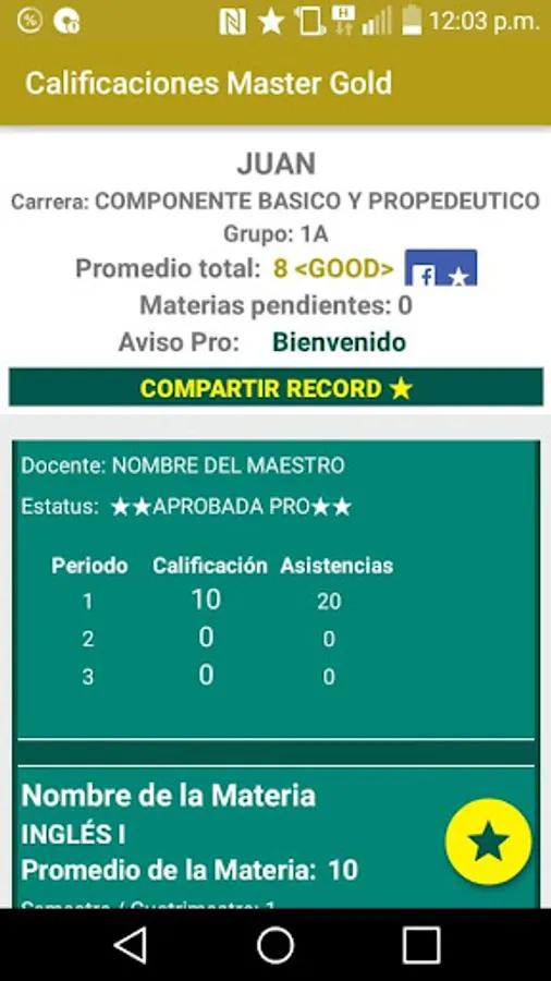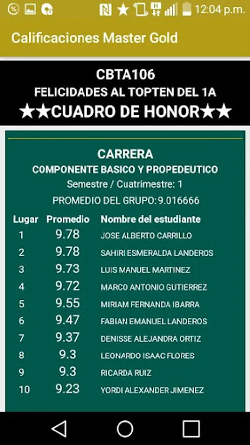 Qualifications consultation by students, parents, teachers and managers of the level schools: Primary, Secondary, High School and University. If you are a teacher and / or school staff you can paste your information from Excel ... request information via whatsapp at 311 7436503.