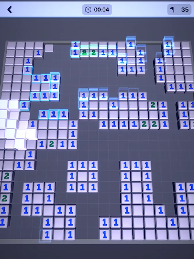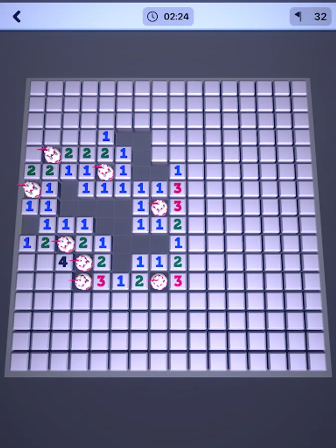 - Tap squares one at a time to reveal what lies underneath. It can either be a mine, number, or blank.
