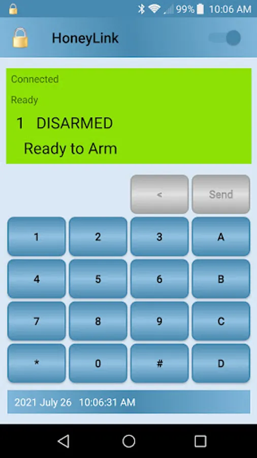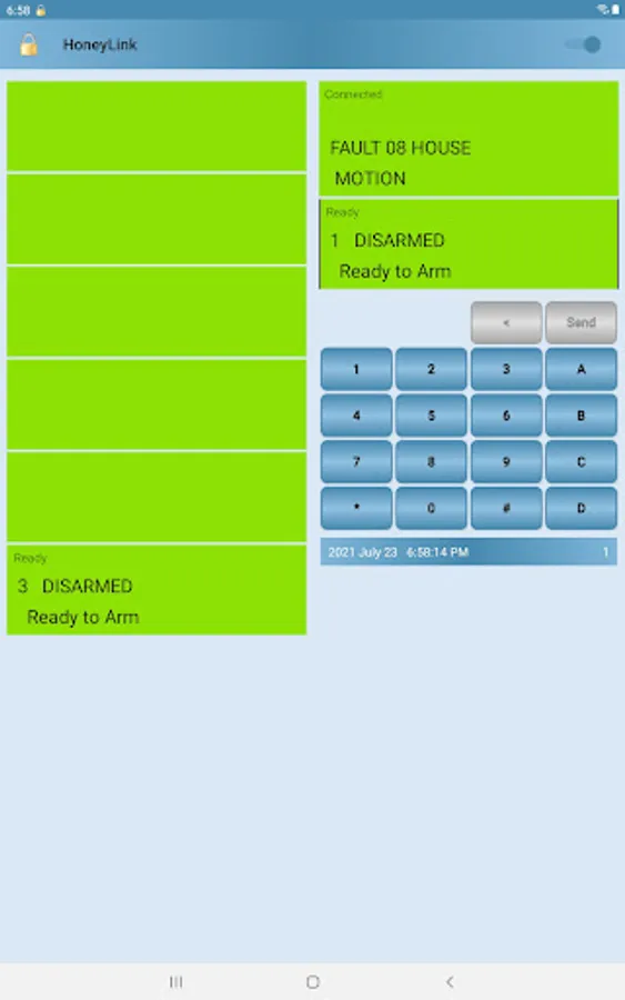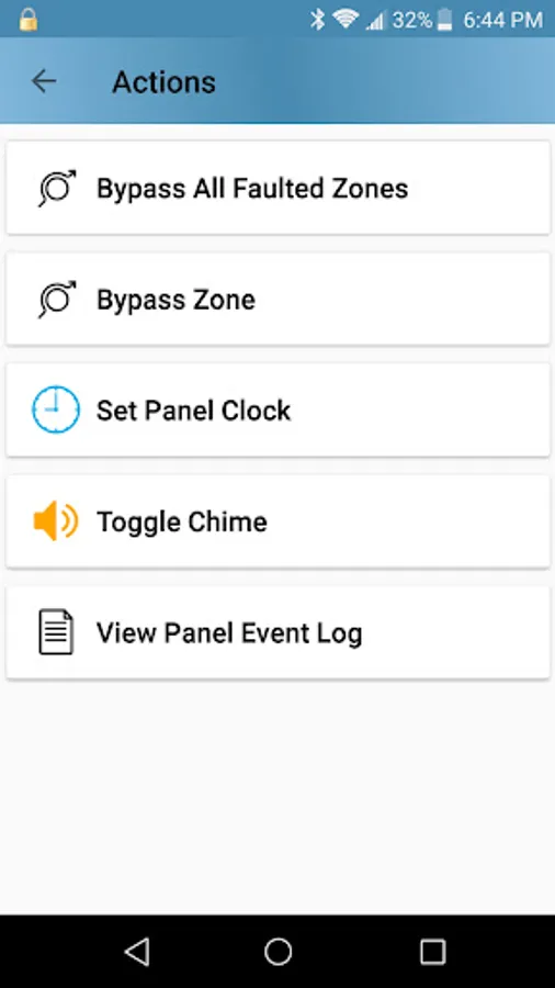 • Real time access to alarm panel from your Android device.