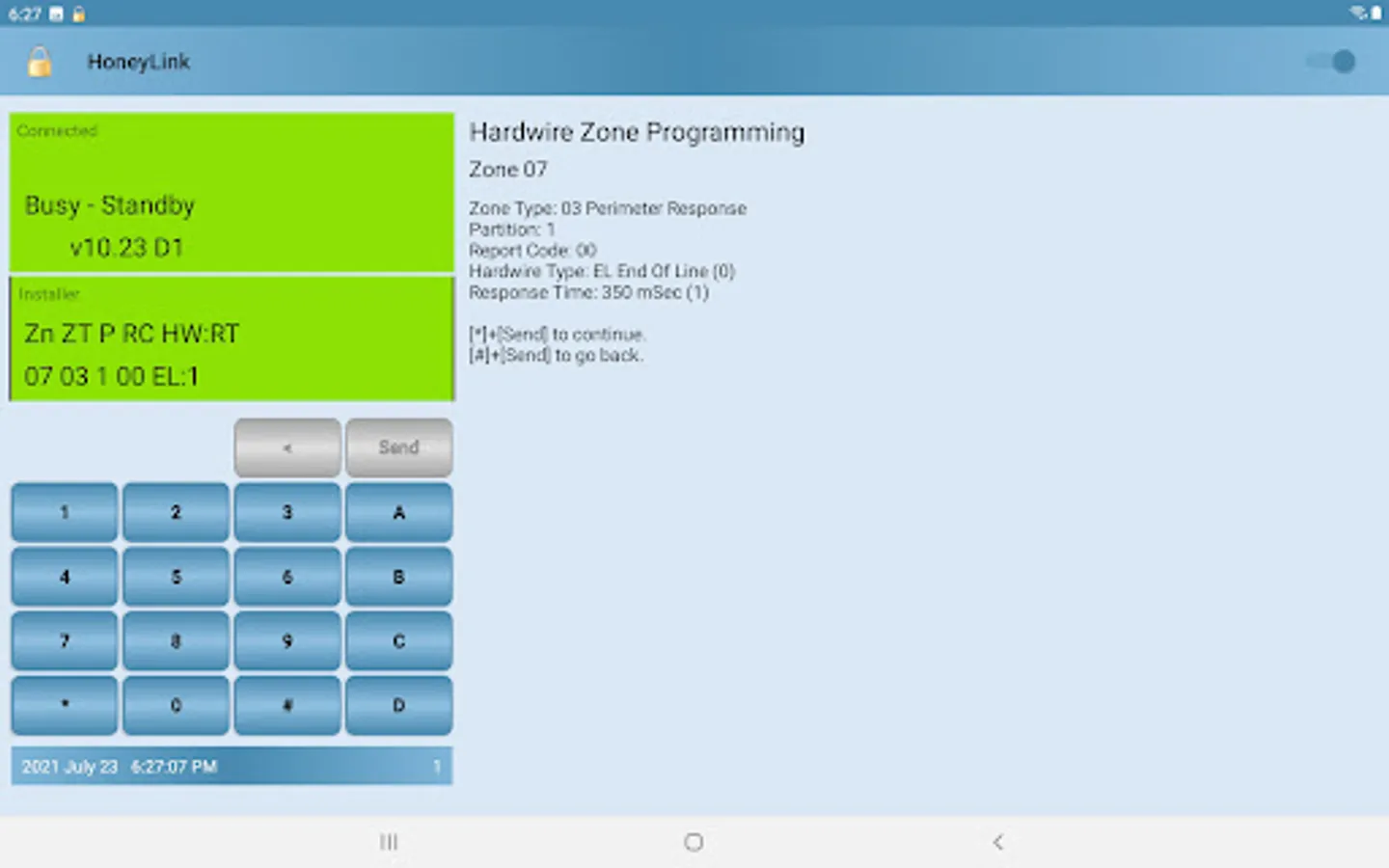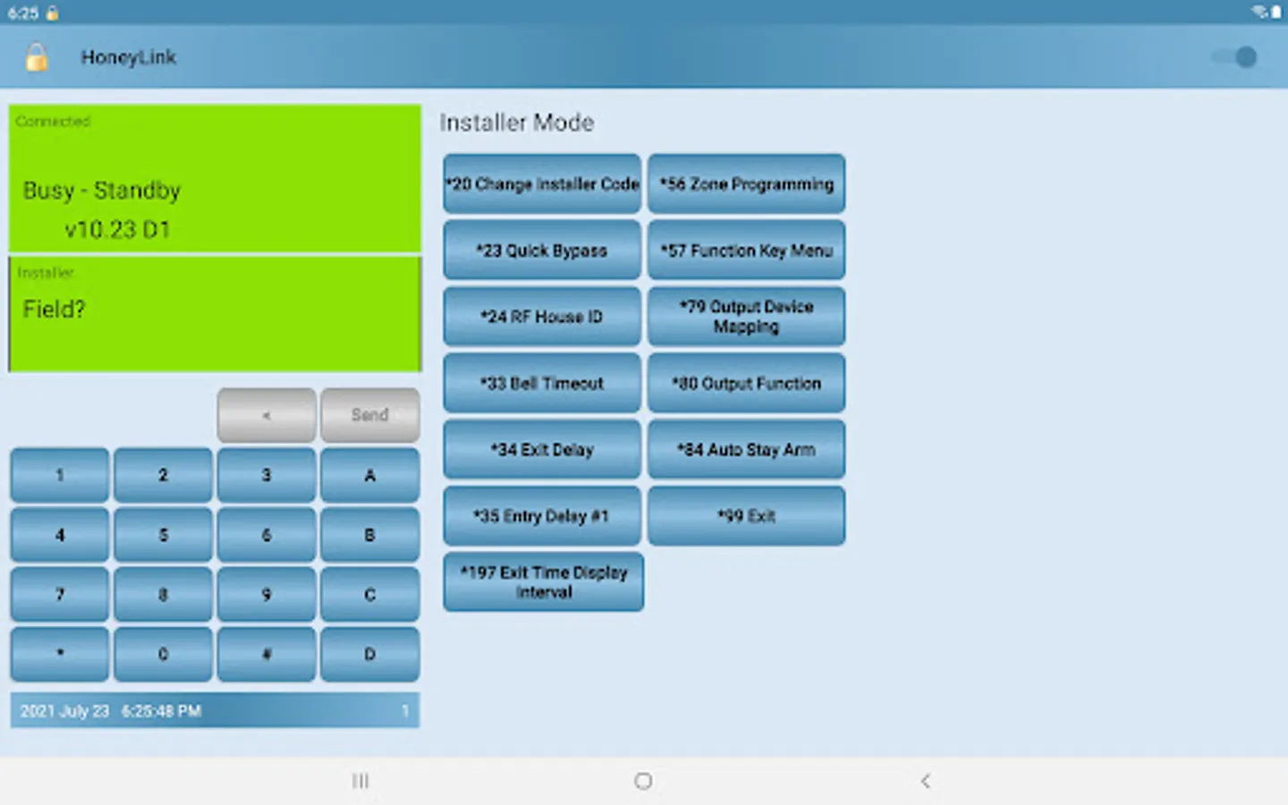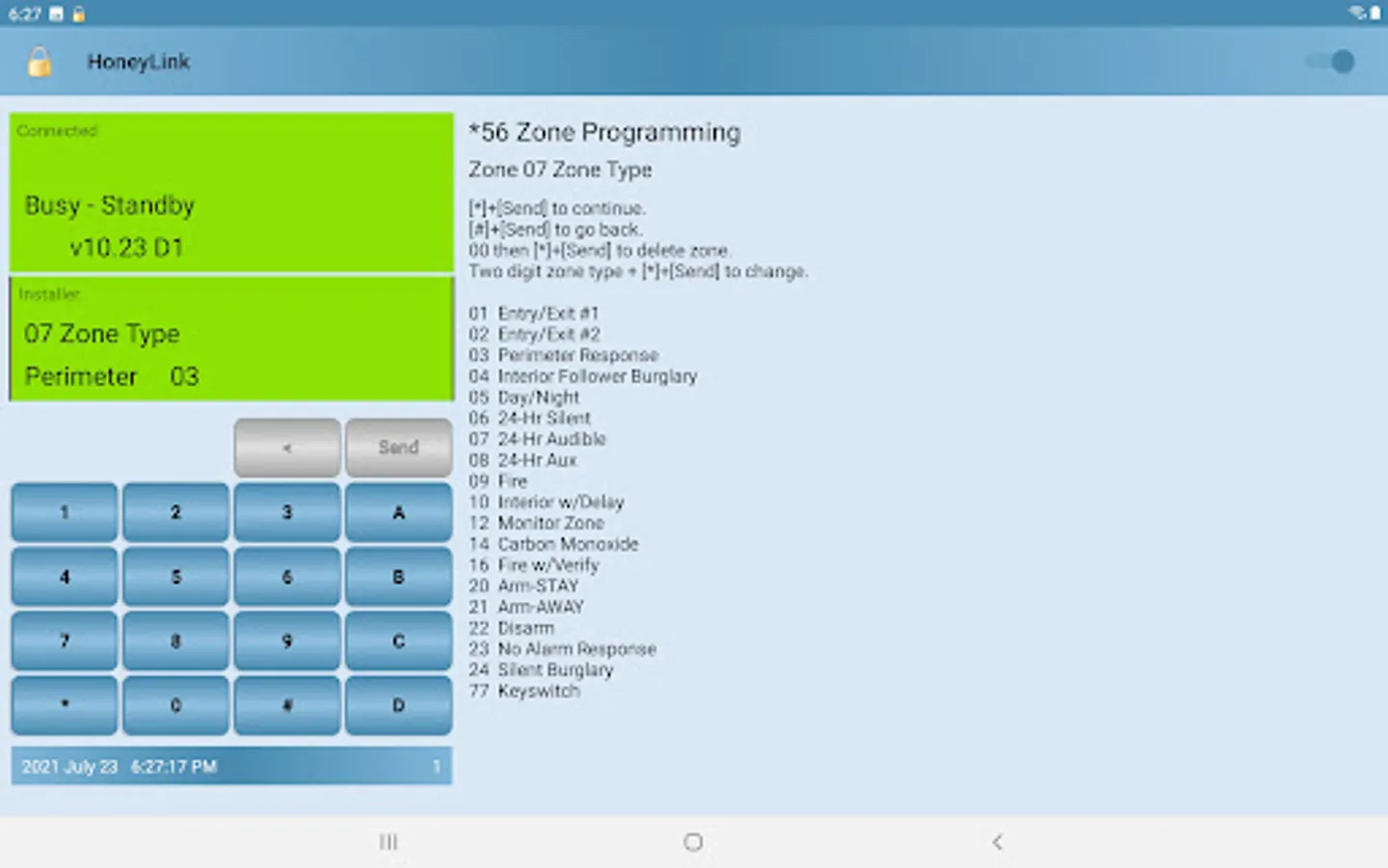 Most Installer Mode features can be programmed using HoneyLink (see Limitations). Context sensitive user assistance text is displayed for common programming options. Zones, Function Keys, Output Devices, etc. Abbreviated and encoded setting values are translated to descriptive text.