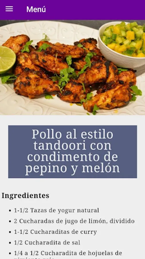 - Tandoori style chicken with cucumber and melon relish