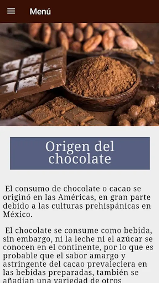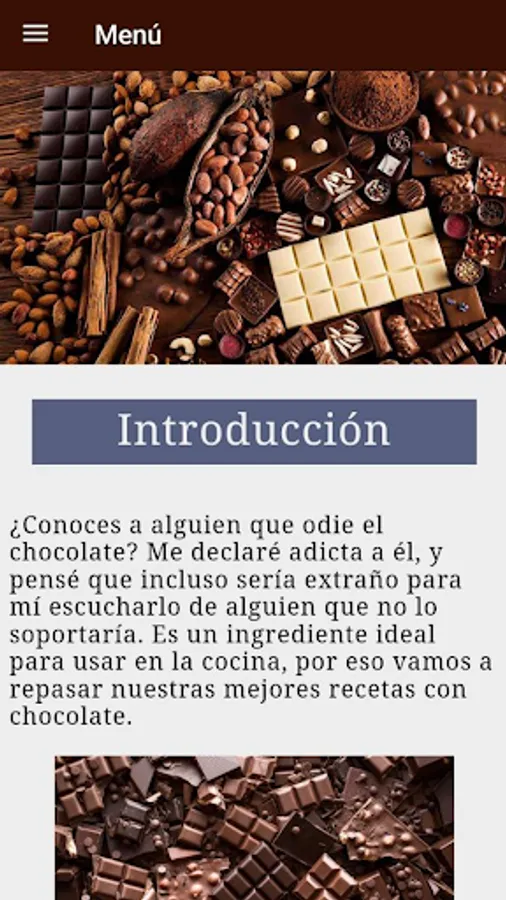Chocolate is one of the most coveted sweets in the world. Furthermore, it is an elegant and exotic dessert that can be found in many shapes and types. Learning to make it requires discipline and above all a lot of practice. For those chocolate lovers we bring this application completely dedicated to our beloved chocolate.