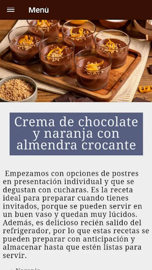 - Recipe for chocolate and orange cream with crunchy almonds