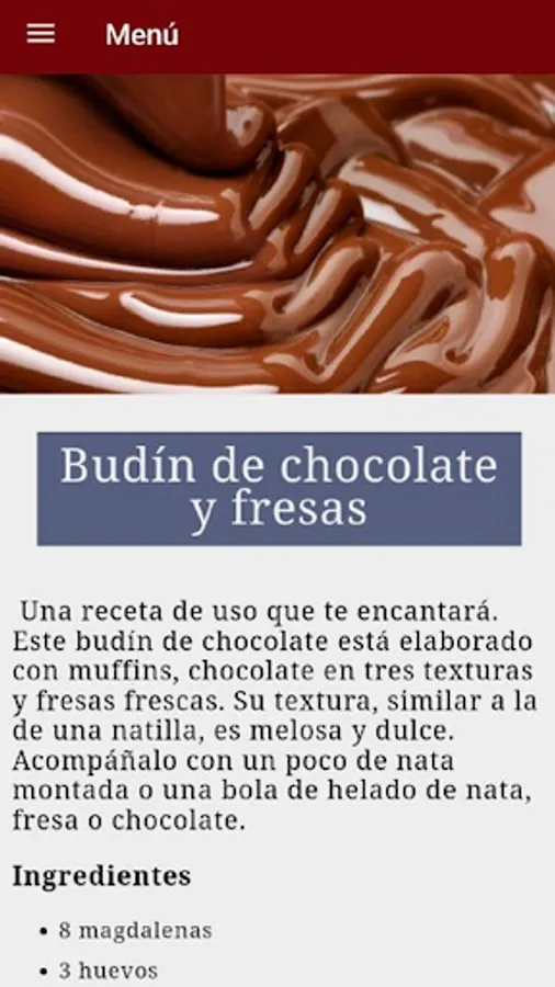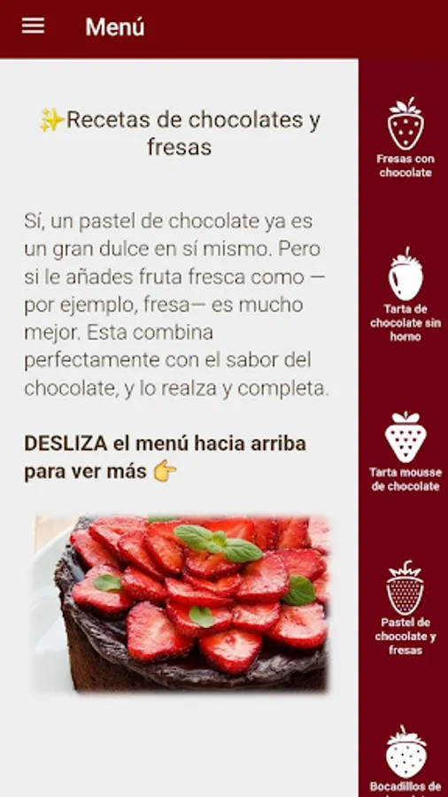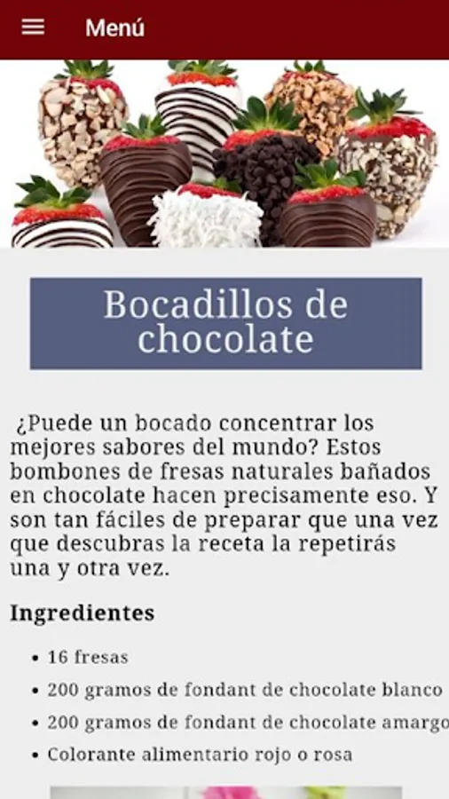 The "Chocolate and Strawberry Recipes" app has a wide variety of innovative recipes, including: