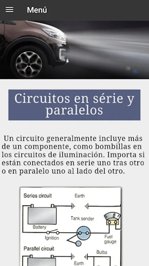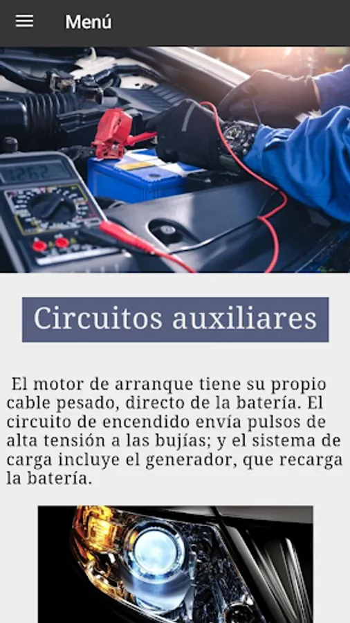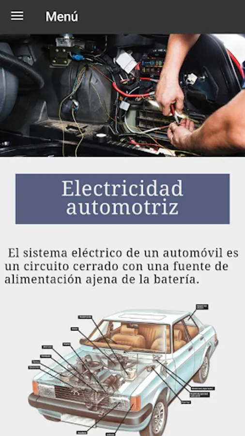 The "Course: Automotive Electricity" app has educational material that will help you diagnose and repair common faults in your vehicle and that of anyone close to you, including: