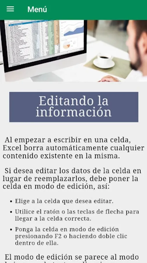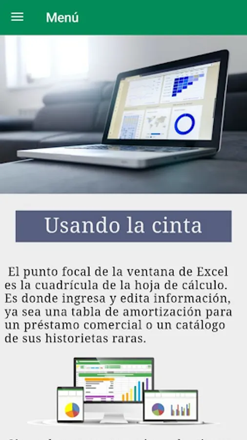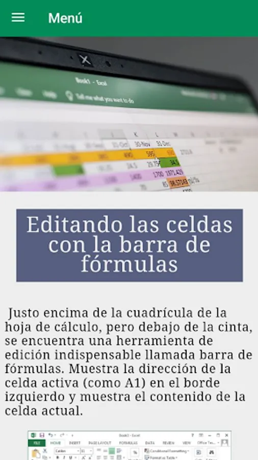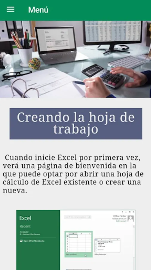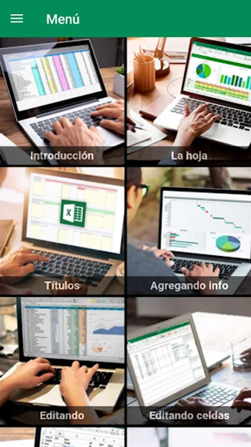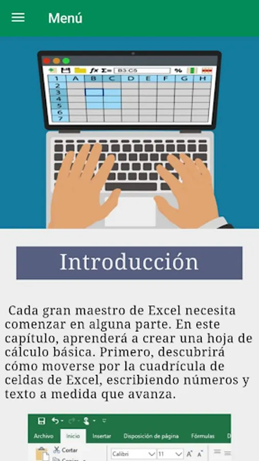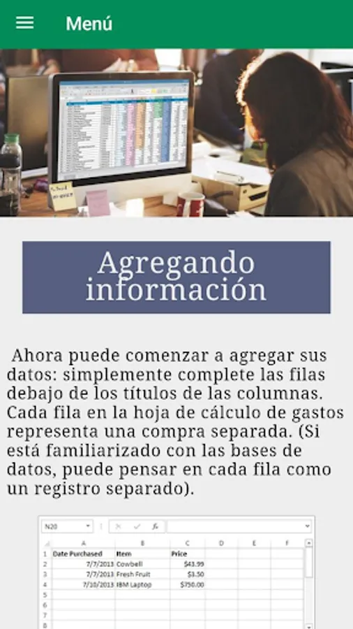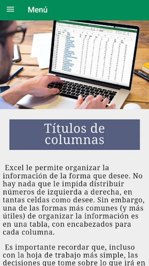The "Spreadsheet Course" app includes a series of articles of your interest in which you can create your spreadsheets from scratch, including: