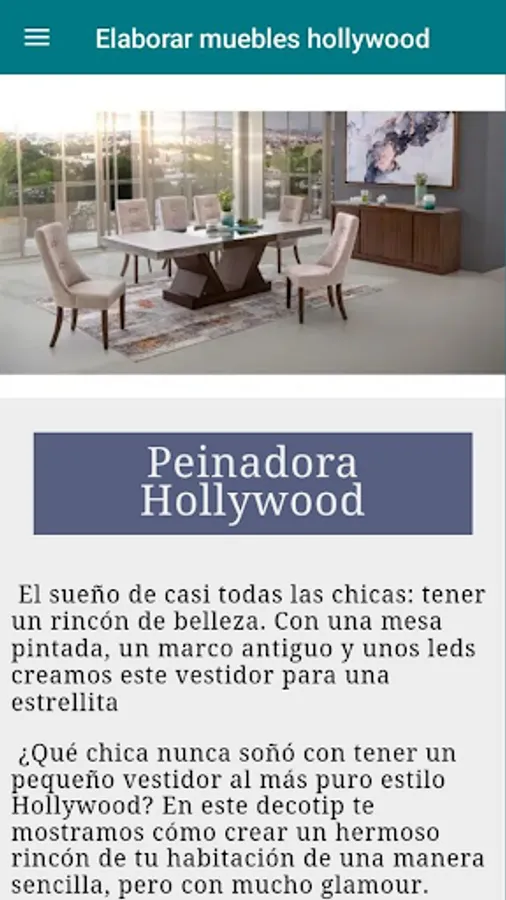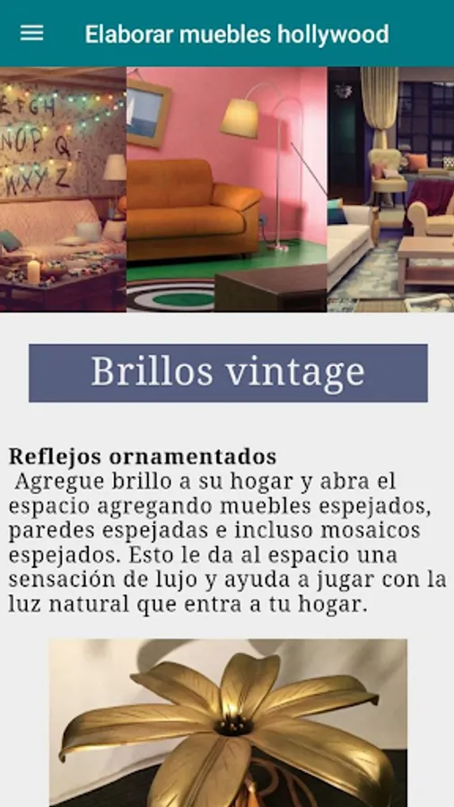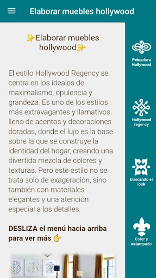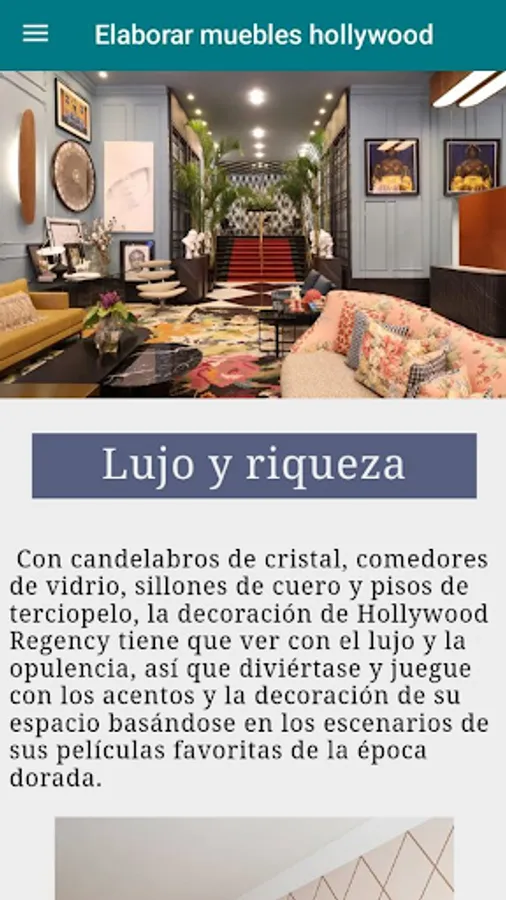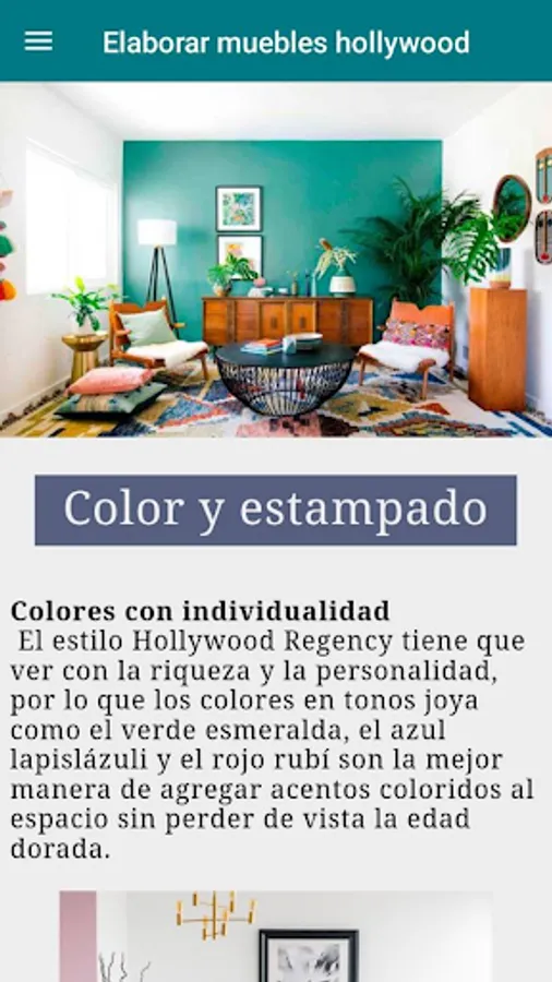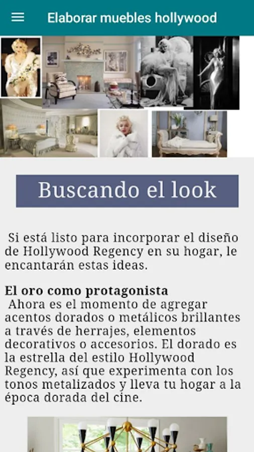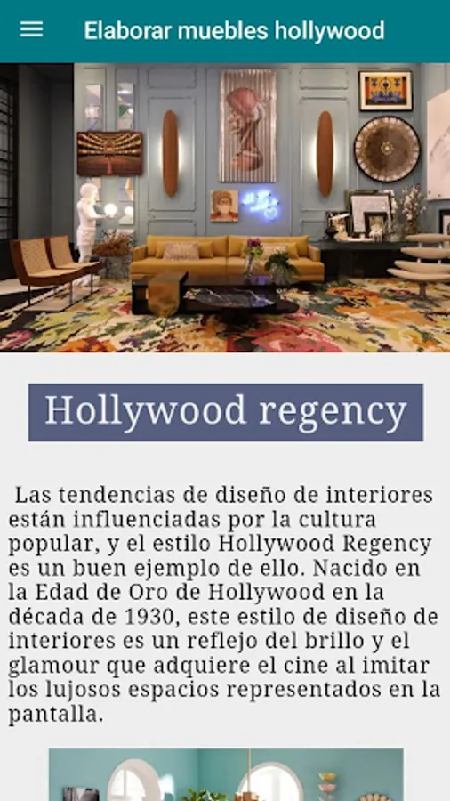 Today the Hollywood Regency look is returning to being one of the hottest trends incorporating timeless elements and accents of opulence that reflect the golden age of cinema. So if you want to know a little more about this style and learn how to apply it in your home, this app is just what you need.