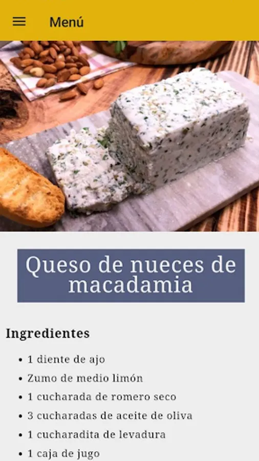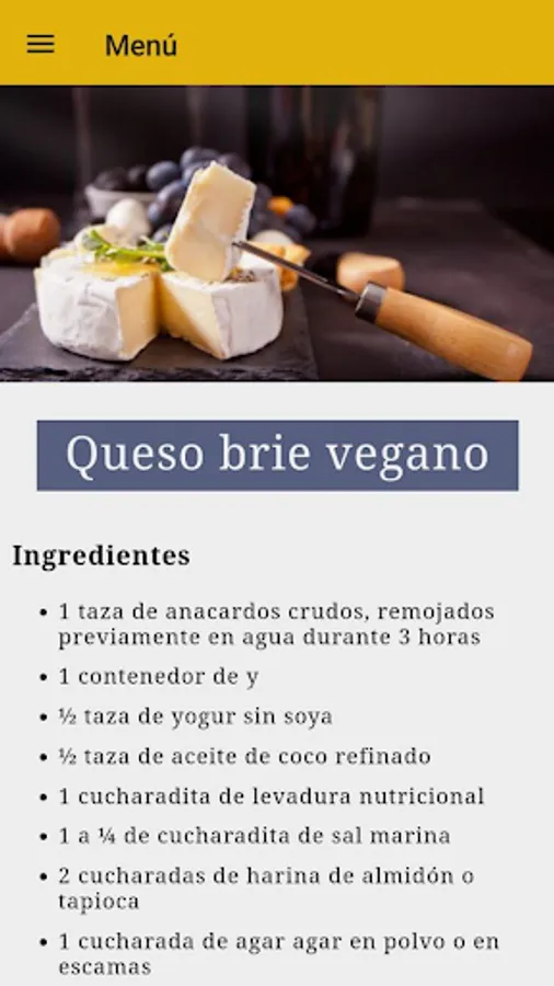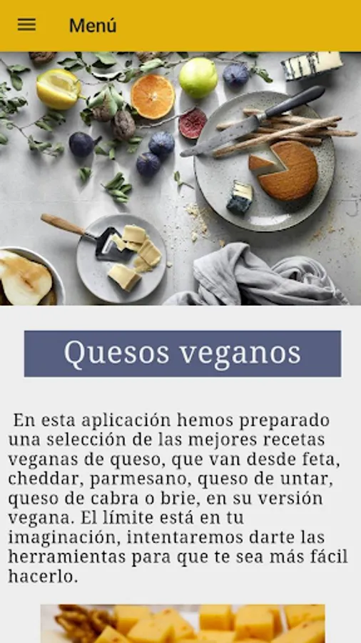 The "Vegan cheese recipes" app has exquisite recipes for a variety of cheeses, on which you will find very interesting topics: