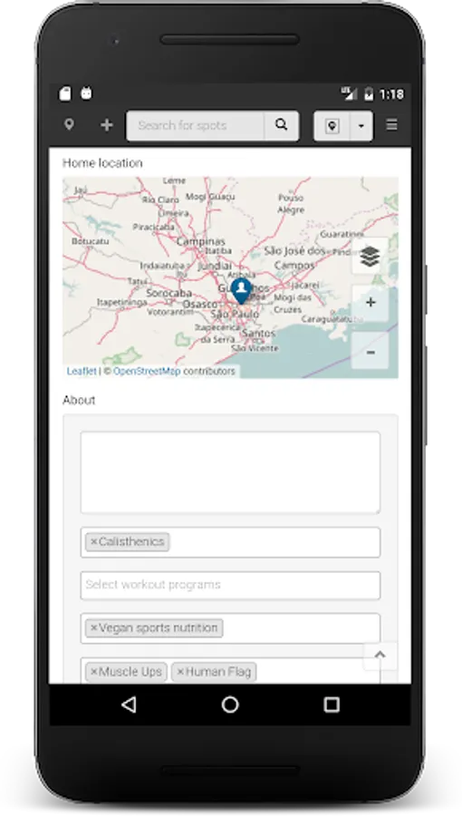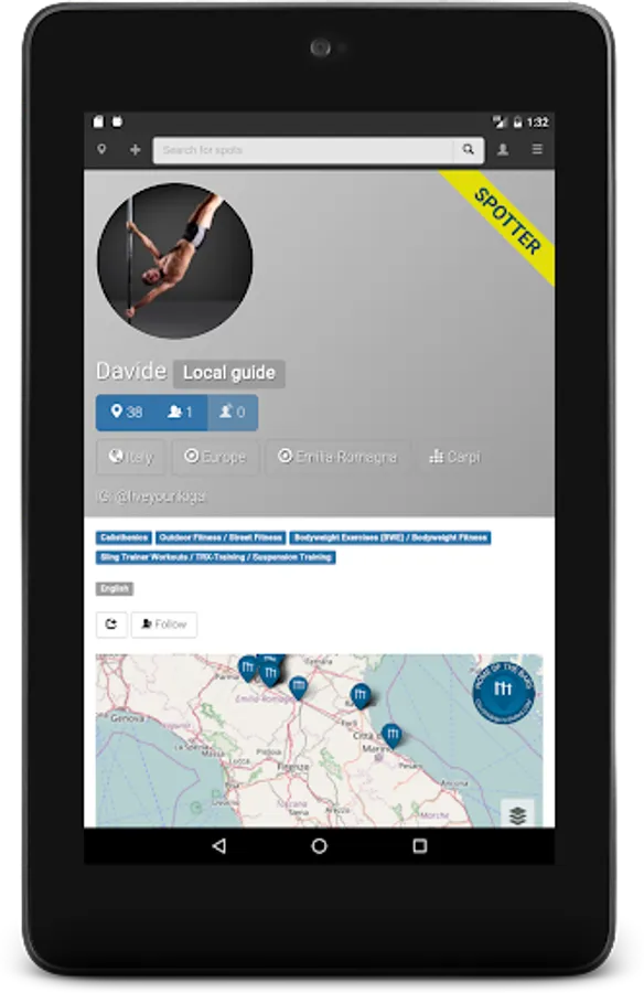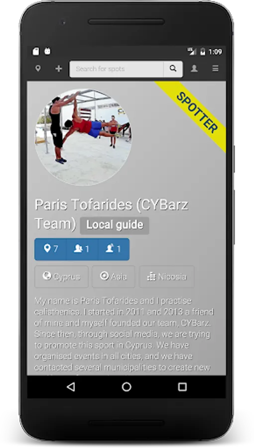 - Add spots to become spotter status and to share them with the calisthenics community worldwide