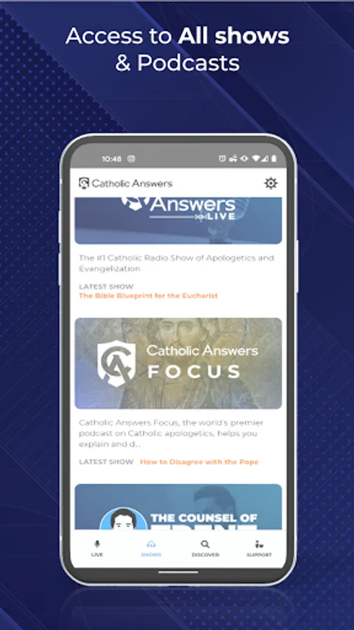 The Catholic Answers Live app lets you:
