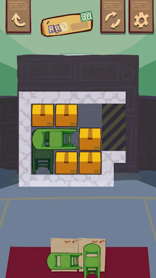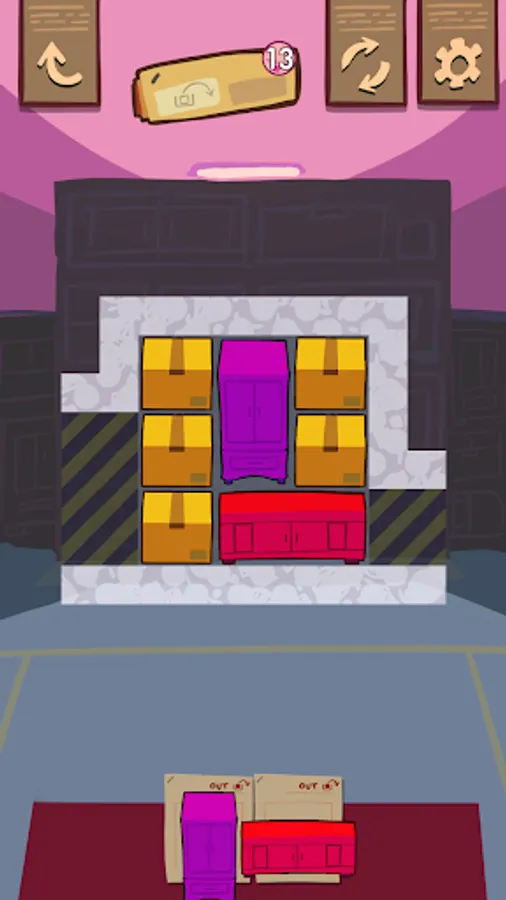 A Day Off is a game about organizing a messy warehouse by sliding furniture and boxes in and out of their storage units.