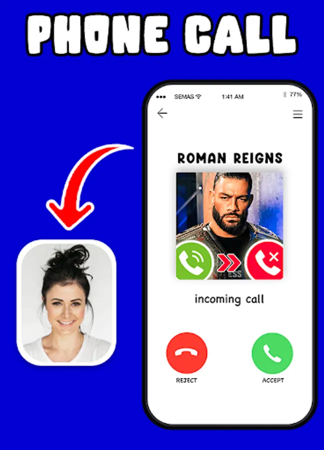 Today you will receive a video call from Roman Reigns so he can discuss with you and talk with you about your everyday life. In Roman Reigns Fake video call Roman Reigns you will be able to call your favorite wrestler fighter Roman Reigns and Chat with him and other wrestlers such as John Cena hulk hogan and many more. All you have to do is just make the settings and place a call. feel free and download this Roman Reigns video call app for fun and prank your friends.