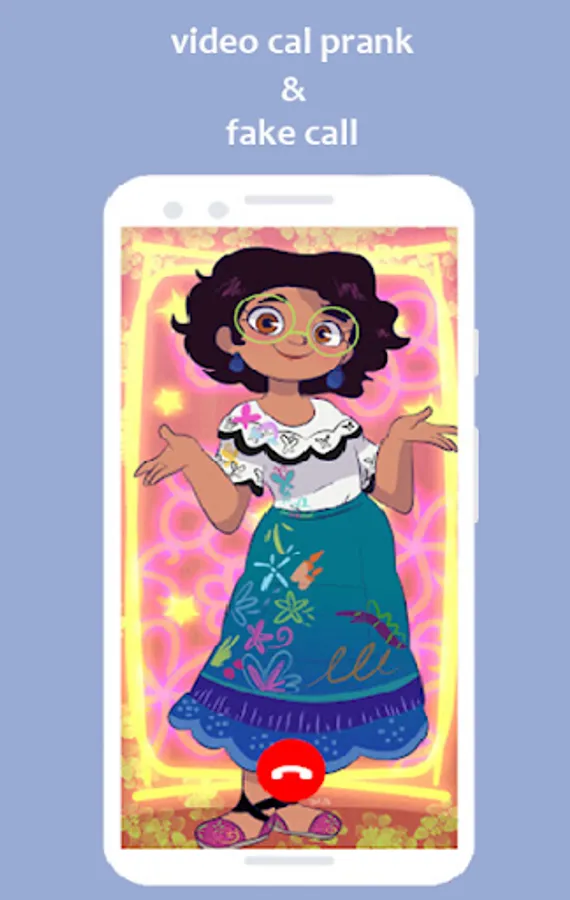 With Fun call and Mirabel Encanto Fake Call you can got trick calls or fake caller with genuine voice of bruno and mirabel encanto and mimic a genuine video call of having Mirabel encanto.