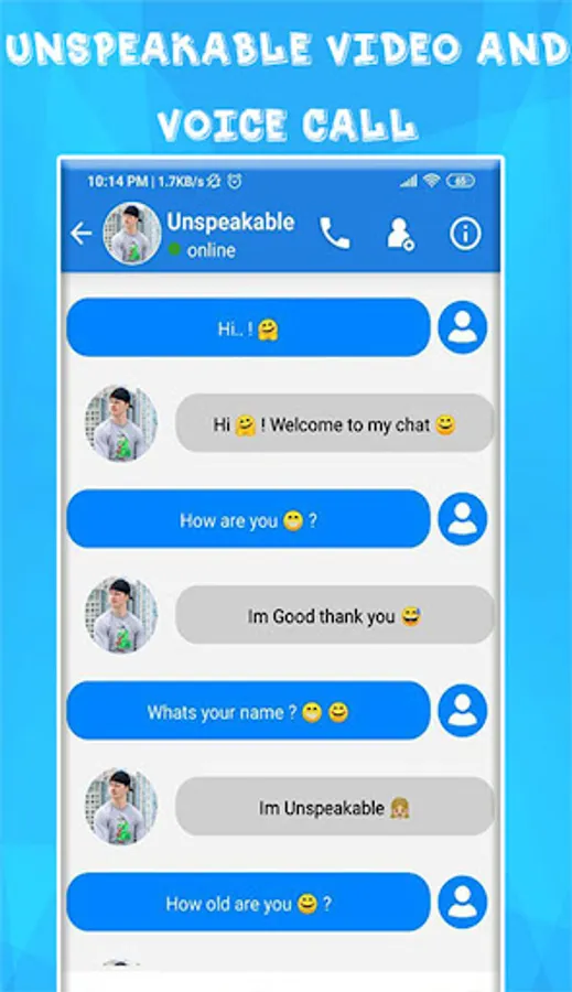Unspeakable Call and Fake Video & Unspeakable Chat is an excellent application directed to fans Unspeakablegaming. It is effortless to use choose your option Unspeakable toys calling video and chat, create a super discussion chat with Unspeakable video calling, and texting conversation.