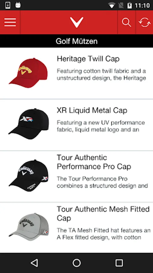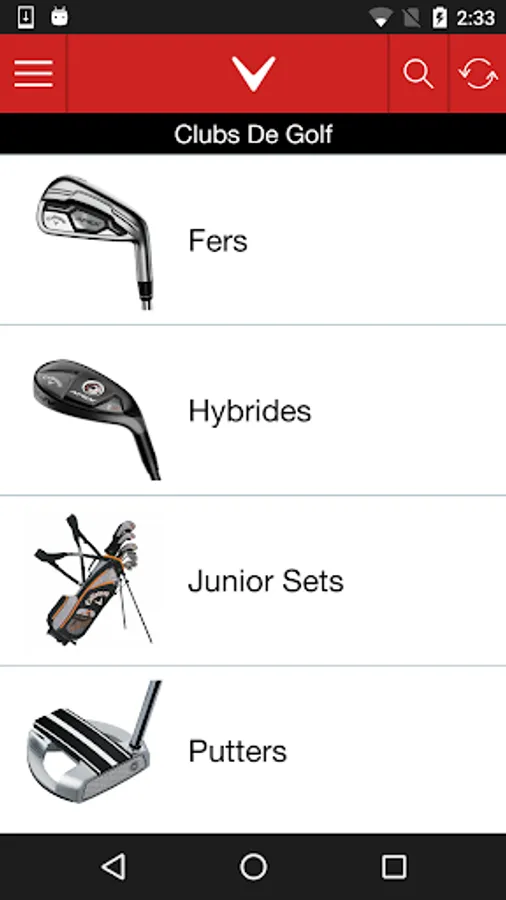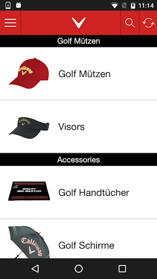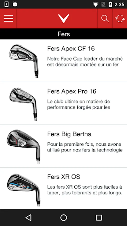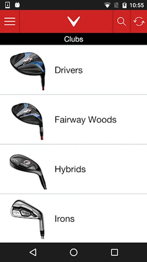 Product catalog for Callaway Golf clubs, golf balls, and accessories.