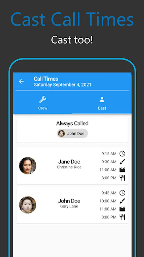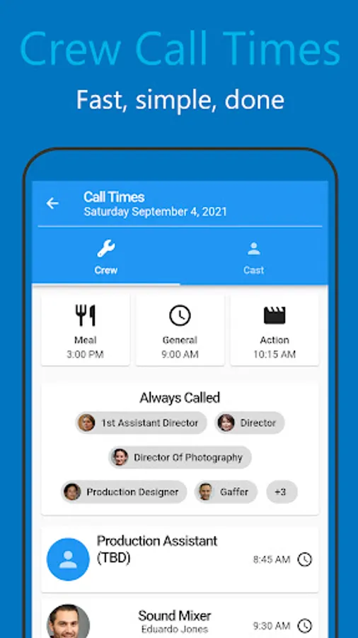 The call sheet has been essential to film making for years. The struggle of viewing and using the information on a .pdf document on a smartphone however, is new. Callboard simplifies the call sheet, keeps all call sheets in one location, and does it faster, easier and better than Excel.