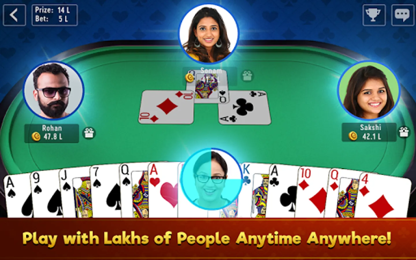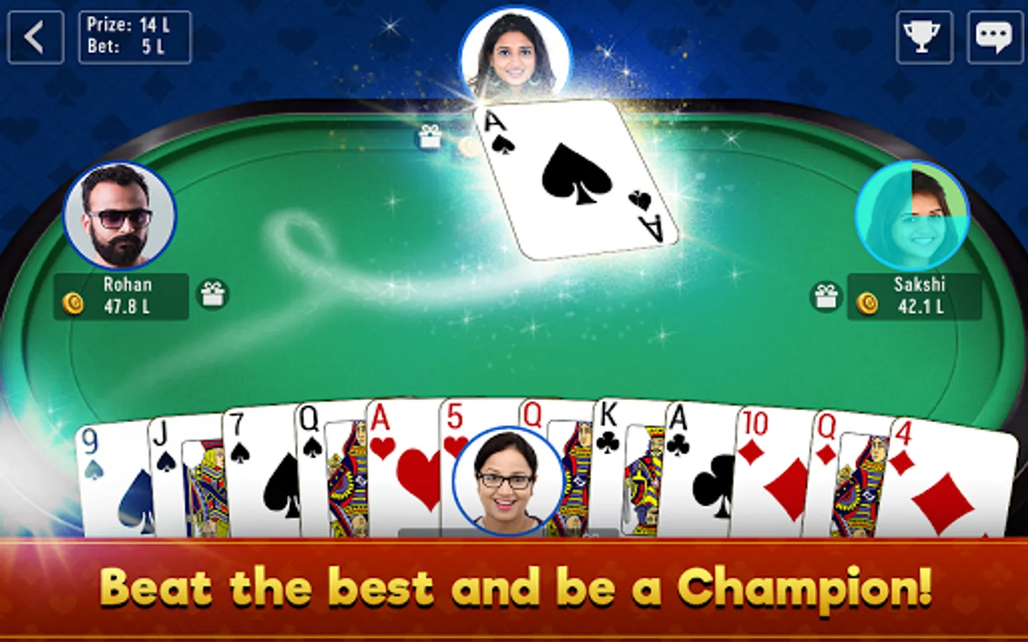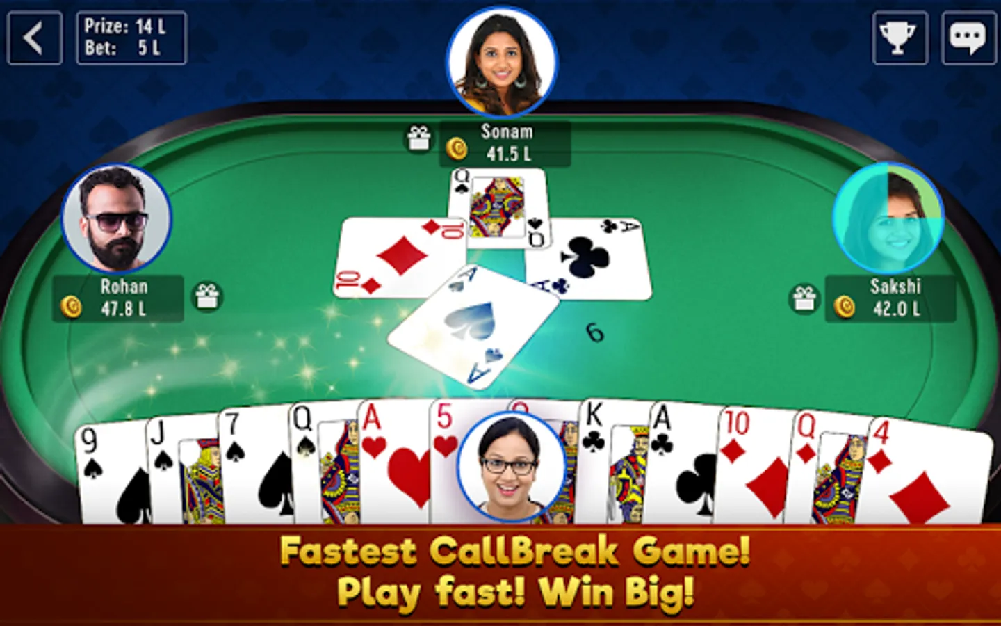 With this app, you can play Call break any time with millions of players from around the world. This game is full of strategy and tricks unlike other popular gambling-based card games like Teen Patti and Poker.
