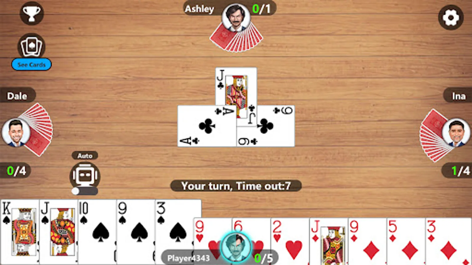 -The online card game is a tricky Rakdi multiplayer card game that uses standard 52 cards to play between four players.
