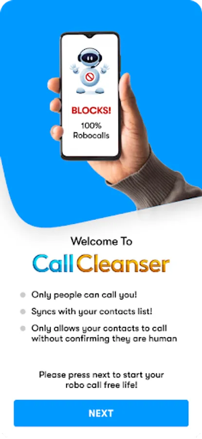 When someone or something thing calls you, the call is sent to our cloud based program, if the caller is in your contacts the caller is verified and sent to your phone. But if the caller is not in your contacts they hear " I am using Call Cleanser to STOP Robo calls, please press (random numbers) to connect your call", if that caller does not enter the correct numbers the call is terminated!!! And we know that a robot can not answer the questions and therefore NEVER get through to you! And all of this happens before your phone even rings.