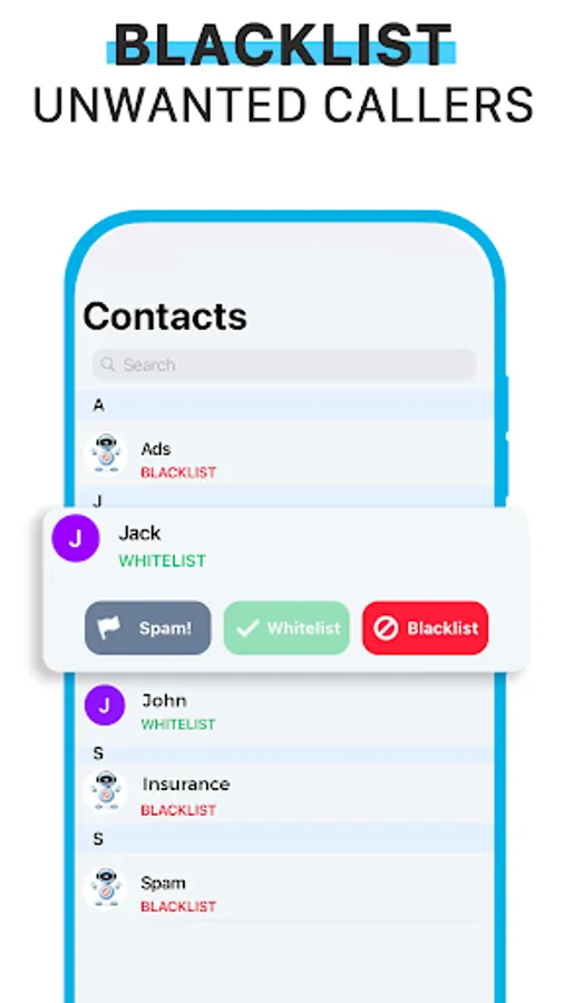 Call Cleanser makes it simple to block 100% or Robo Calls 100% of the time! The only database that matters is who is in yours! Other apps use lists of robo callers and spammers but their list is outdated the moment they update it! Call Cleanser works on your contact database, which is never outdated :-)