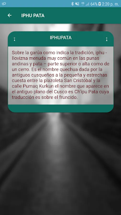 Mobile application that provides information on the origin of the name of the streets of Cusco in Quechua, its meaning and stories that each of them hides.