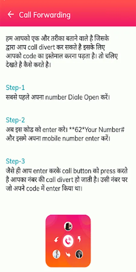 Call Forwarding app is easy and simple application to use for forwarding your incoming call to another number.