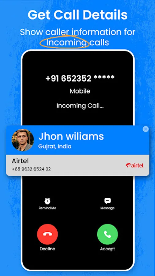 -When an incoming call arrives, callapp will identify the caller and show their details.