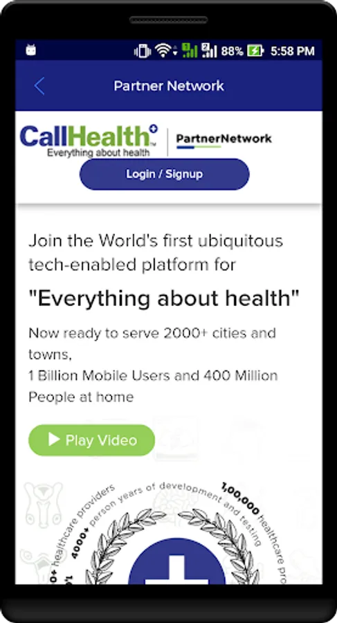 CallHealth is the World’s First, Completely Integrated Healthcare Platform. It Has the Ability to Offer 50+ Types of Healthcare Services Like Doctor Consultation, Second Opinion, Family Doctor, Mental and Emotional Wellbeing, Nursing and Bedside Assistance, Physiotherapy and Speech therapy, Occupational Therapy, Fitness and Yoga Training, Nutrition and Dietetics, Medicine and Medical Supplies, Ayurveda and Homeopathy, Diagnostics and Imaging, Blood Bank, Stem Cell and DNA Analysis, Medical Tourism Services and more.
