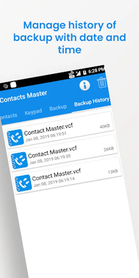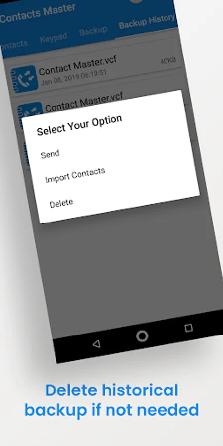 Advanced Contacts Manager app allow to take backup of your contacts. No activations required to take backup of contacts and app is working in online and offline mode too.