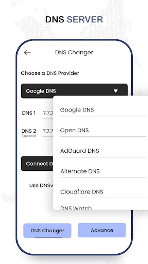 The DNS Changer changes your device's DNS address without affecting your connection speed and also helps to keep your web browsing fast, and more secure. It also allows you to access websites region-blocked by your ISP and may speed up your internet connection and improve the online gaming experience with reduced ping time which gives a faster response.